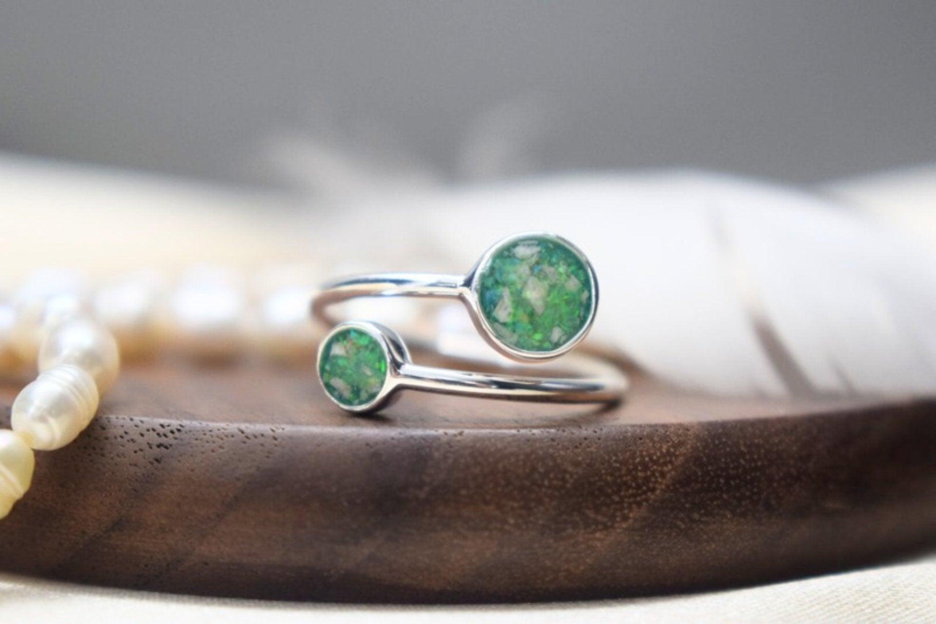 Yes. Every piece is handmade to order and can be personalised with resin colours, sparkles or opals. We can also engrave names, messages, or even your loved one’s handwriting inside the ring or pendant and it’s always free of charge.