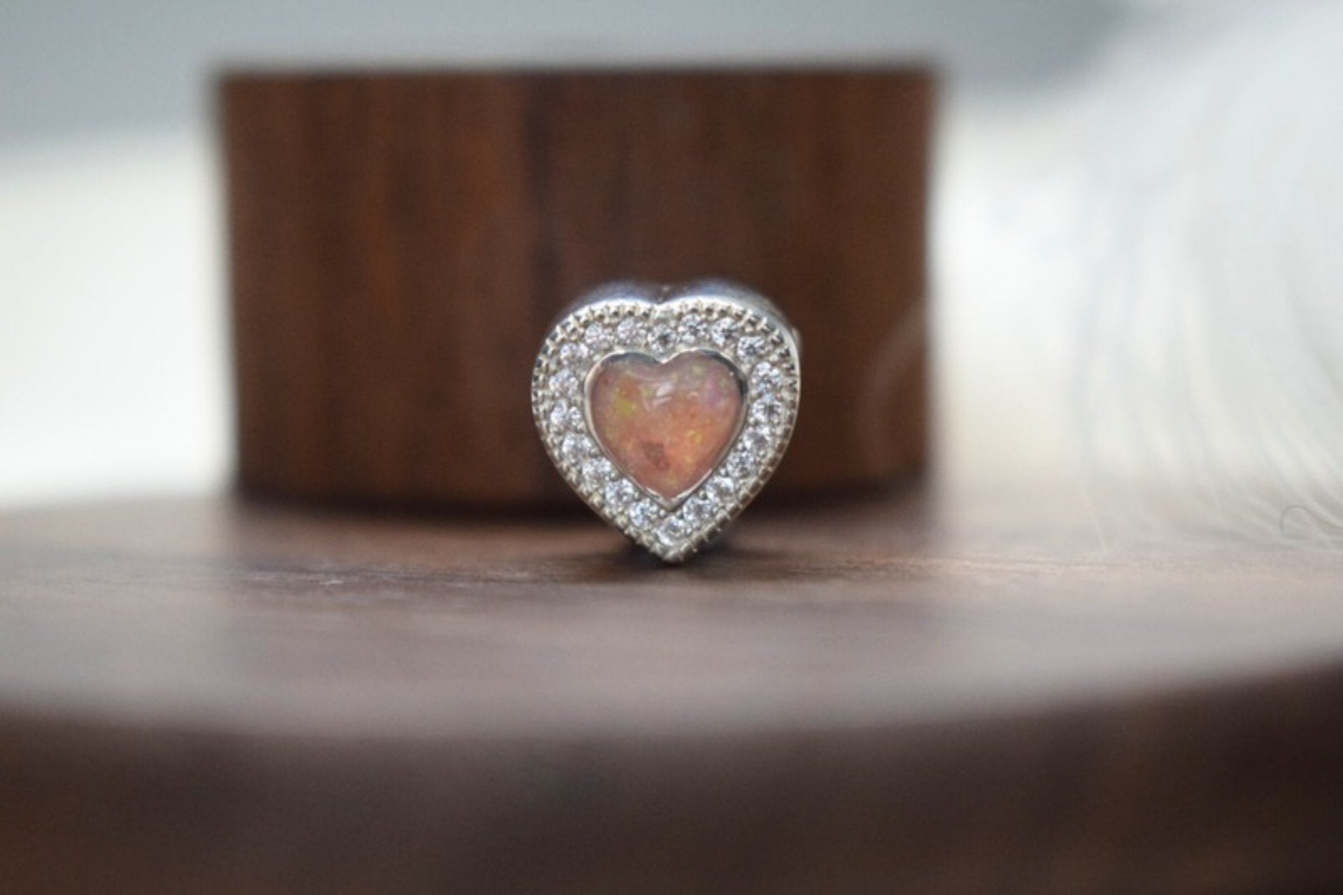 This elegant Pandora-style heart charm is crafted from solid sterling silver, featuring a central inlay space to hold ashes, hair, fur, or a small piece of fabric. The heart is surrounded by a sparkling row of clear CZ stones, creating a timeless, personal tribute that fits seamlessly into most charm bracelets.